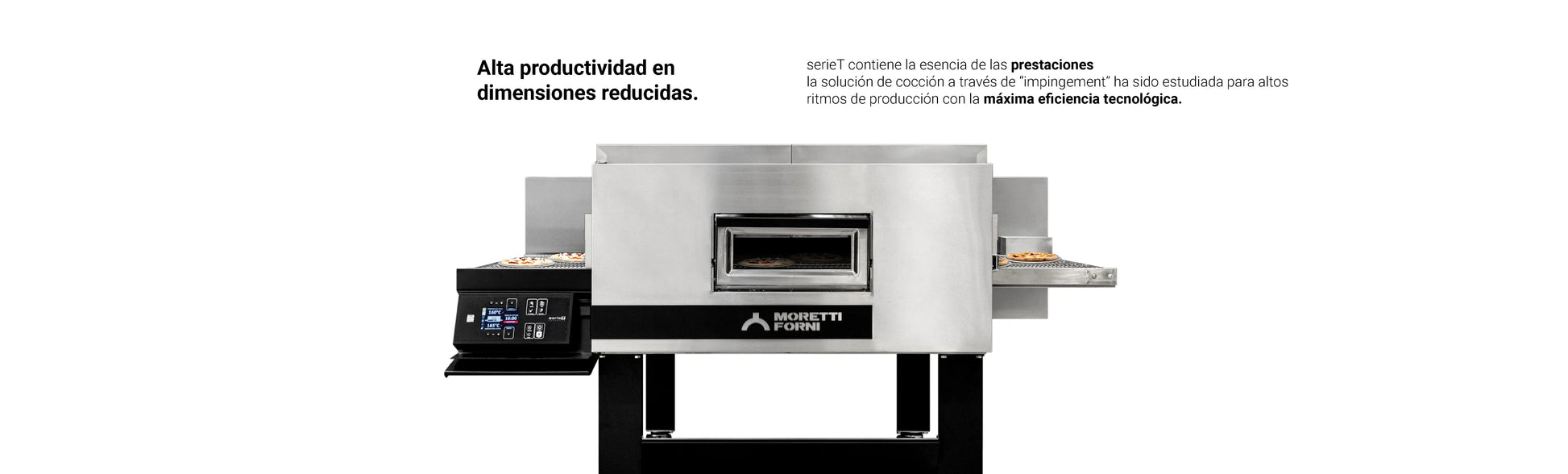La versatilidad del Serie T permite trabajar distintos tipos de masa y recetas, desde pizzas clásicas y precocidas hasta productos de pastelería y panadería, siempre manteniendo textura, sabor y calidad. Es el horno ideal para cocinas que buscan rendimiento superior, tiempos reducidos y máxima eficiencia en cada preparación.