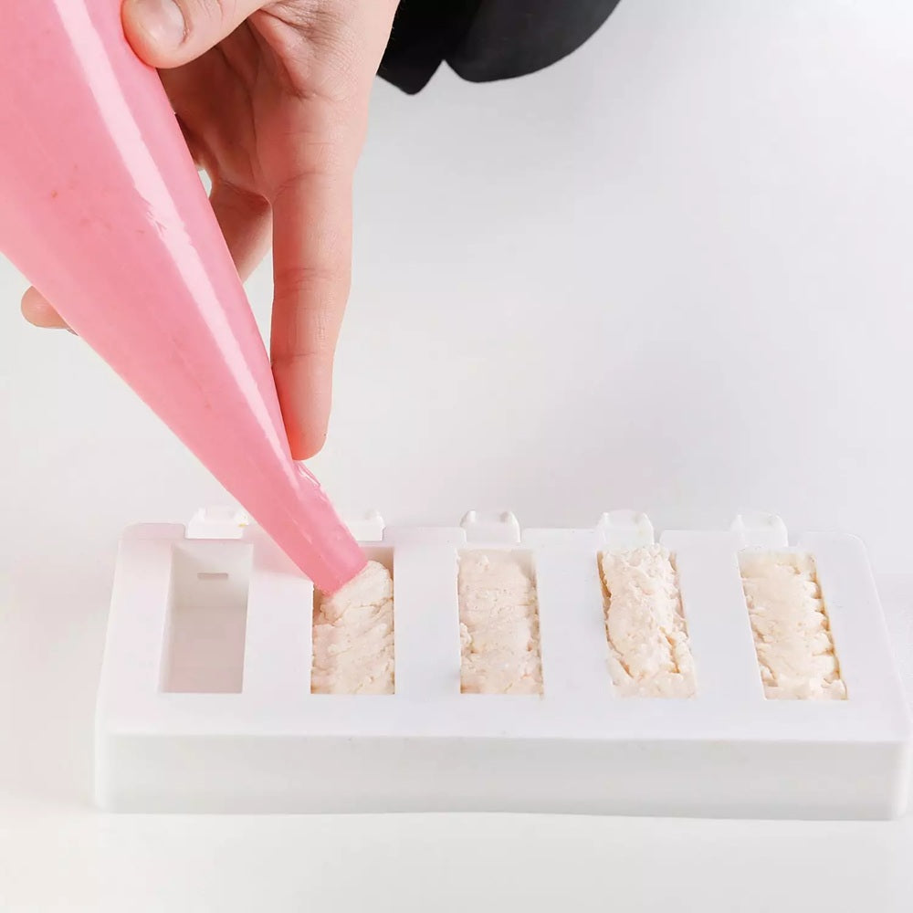 Este set de silicona de Silikomart es perfecto para crear mini helados, chocolates y snacks en palito con un acabado uniforme y profesional. Sus moldes antiadherentes permiten un desmoldeo sencillo, mientras que la bandeja facilita el llenado y transporte. Versátil, duradero y fácil de limpiar, es una herramienta esencial para cocinas, pastelerías y heladerías que buscan resultados uniformes y profesionales en cada preparación.